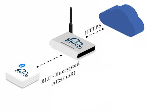 Communication from the sensor to the IoT platform is fully encrypted. Bluetooth Low Energy sensors send the data to Shiva IoT Gateway with AES 128 encryption and Gateway sends the data to the platform with TLS encryption (https). Shiva IoT LTE-M sensors allow you to configure an APN to make sure that nobody can access your data. Moreover, LTE-M devices will support DTLS encryption in Q3 2020.